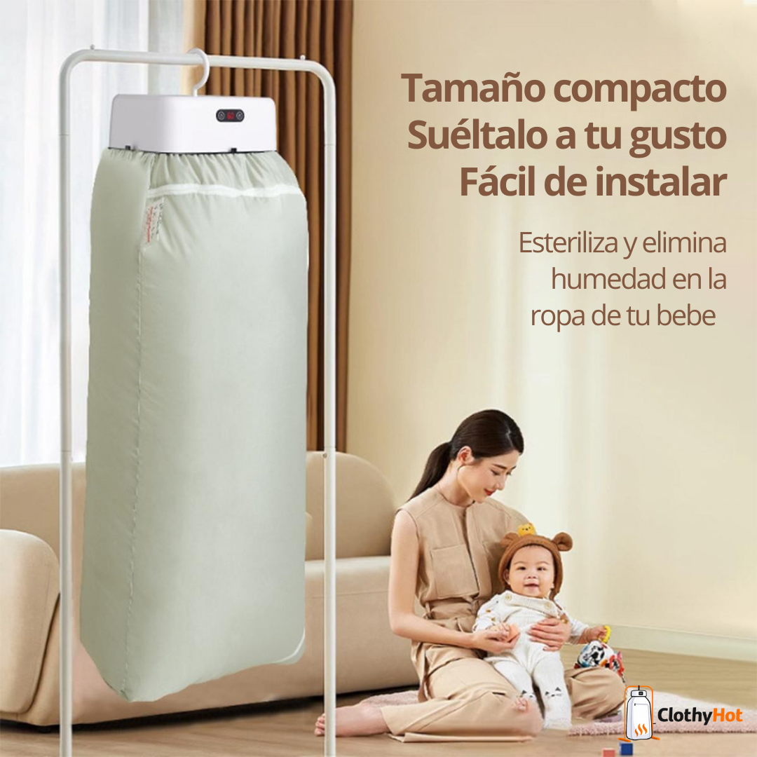 Olvídate de tender ropa o esperar horas a que se seque. Con ClothyHot, seca tus prendas de forma rápida, segura y silenciosa gracias a su avanzada tecnología de aire caliente.